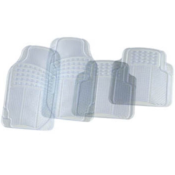For the mat, I used a clear plastic car mat set purchased at Menards for ~ $5.00. I was able to create two mats, one from the front floor mats and one from the rear