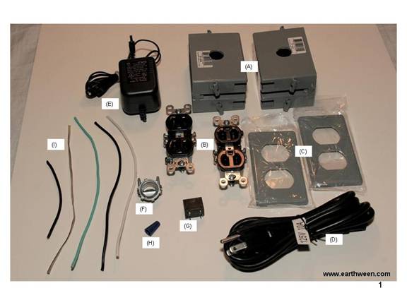 Components - Supply List ($20) Reference Figure 1 for a picture of each component. Note: not all components will look exactly like what is pictured in this document. The power adaptor could be a different size, color, output voltage, etc. The relay could be slightly bigger, smaller, different color, make, voltage, etc. This goes for all of the components. (A) 2 – single outlet boxes (gang box, wall box) ($1) (B) 2 – outlets (duplex outlet) ($2) (C) 2 - outlet box covers ($1) (D) 1 - Power cord – 125VAC, 10amp ($1) (E) 1 - 6-9vdc Power adaptor (wall wart/transformer) ($2) (F) 1 - outlet connector ($1) (G) 1 - 6vdc relay rated for 120vac, 10amps ($1) (H) 1 – electrical wire nut (.50) (I) 5 pieces of misc wire (.50) (Z) 1 Alarm mat (switch mat) dimensions 21” x 14” ($8) 2 zip ties (not shown) (.50) Misc expense, glue, solder ($1.50) Prices are approximations. Power adaptor, power cord can be obtained via surplus, garage sale, Goodwill, etc. Adaptors from old cordless phone systems work perfectly. Alarm mat is the only purchase that is hard to make. Buy at Harbor Freight in store for $10, online for $7.99 at http://www.harborfreight.com/cpi/ctaf/displayitem.taf?Itemnumber=96481 Another reasonable option might be a Floor Mat Switch from Trossen Robotics. http://www.trossenrobotics.com/store/c/2754-Floor-Mat-Switches.aspx The 6vdc relays (rated for 120vac, 10amps) can be found at online electronics stores. Look here. Radio Shack - http://www.radioshack.com 7-9VDC/12A SPDT Relay, Mini ($4.49) http://www.radioshack.com/product/index.jsp?productId=2049716 Electronic Goldmine - http://www.goldmine-elec.com/ 9VDC 10Amp Contact SPST Relay by OEG ($1.25) http://www.goldmine-elec-products.com/prodinfo.asp?number=G1996 Fully enclosed relay by OEG type SDT-SS-109DM features 9VDC coil and SPST 10Amp 250VAC contacts. Size only 24mm (L) x 10mm(W) x 24mm(H). Has solder pins for PC mounting on bottom. Brand New. G1996 All Electronics - http://www.allelectronics.com/ 6VDC SPDT 10A RELAY ($1) http://www.allelectronics.com/make-a-store/item/RLY-501/6VDC-SPDT-10A-RELAY/1.html Fujitsu # FBR161NED006-WB. 6Vdc, 100 Ohm coil. S.P.D.T., 10 Amp contacts. 0.86" x 0.64" x 0.63" high sealed plastic case. PC leads. American Science & Surplus - http://www.sciplus.com/ Search ebay with the following "5V DC Relay 10A"