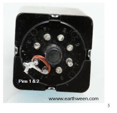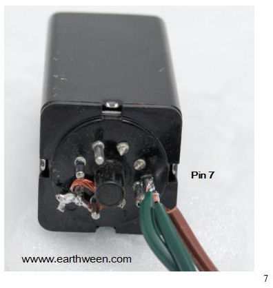 Step 1 I like to cut (remove) the three pins that aren’t used in the control. I use wire cutters to snip pins 5, 6 and 8. Figure 4 depicts the relay with the cut poles (hard to see). In the diagram below, we see where input power is applied. Based on the schematic of the relay, we know it takes 120 VAC power and the relay is triggered by applying this power to pins 2 and 7.