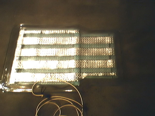 For the conductor (between the mat sides), I used aluminum duct tape (used for sheet metal duct work), also from Menards for ~ $5.00. The tape is simply aluminum foil