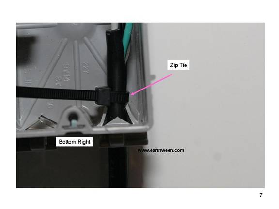 Securing the zip (Figure 7) tie will help prevent the power cord of getting pulled out of the outlet box. Cut the zip tie as need to remove the excess tie. Remember, we still need room to install the outlet inside the box.