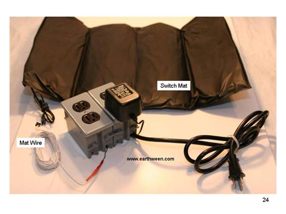Step 10 Connecting the Switch Mat The switch mat is a store bought product that is sold as an Alarm mat (Figure 24). The mat itself is made from a light weight material with a foam padding and a plastic cover. Inside the mat are some “metal” type connections that make contact, when the mat is stepped on (pressure is applied) with a common metal conductor. When the two contacts meet, an electrical circuit is completed and low voltage DC power can flow through the contacts. When pressure is removed from the mat (someone steps off the mat), the contacts separate (do to the foam padding) and the electrical circuit is broken.