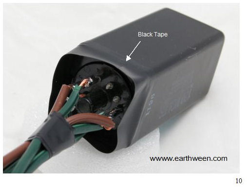 I hang the relay control from the wires and fill in the areas with a good portion of glue (1 to 2 sticks). See figure 11 for a good view of the glue and coverage of the bare wires and pins.